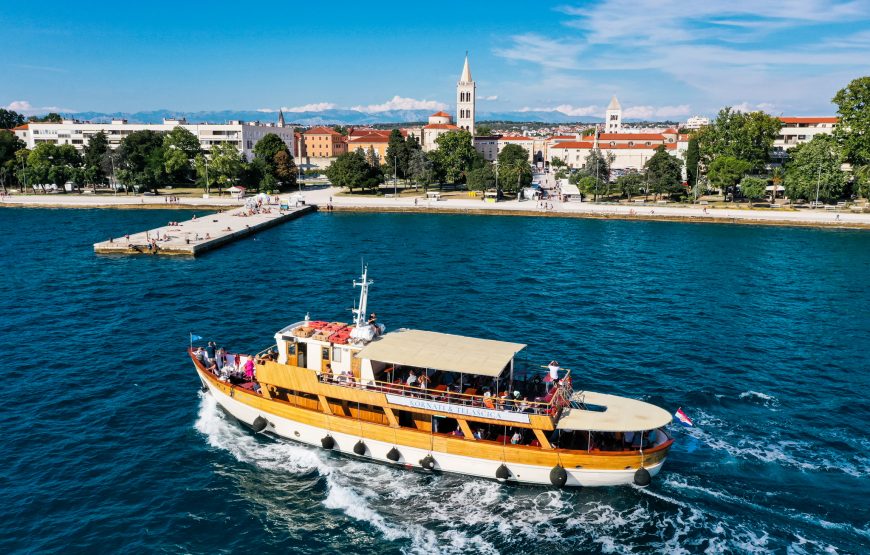 Krenite u uzbudljivu vožnju brodom koja vodi do Parka prirode Telašćica i Nacionalnog parka Kornati, pružajući vam priliku da istražite neke od najljepših prirodnih znamenitosti Hrvatske. Vaša avantura započinje vožnjom gliserom kroz zadarski arhipelag, gdje će vas okruživati kristalno čisto more i očaravajući prizori. Otkrit ćete čuda prirode kao što je slano jezero u Parku prirode Telašćica, poznato po većem udjelu soli od obližnjeg mora, impresivne 166 metara visoke litice koje pružaju spektakularne poglede, te istražiti neke od 89 otoka Kornatskog arhipelaga, poznatog kao najrazvedenija skupina otoka na Mediteranu. Ova cjelodnevna avantura obiluje prilikama za kupanje, sunčanje, i istraživanje netaknute prirode, čineći svaki trenutak nezaboravnim.